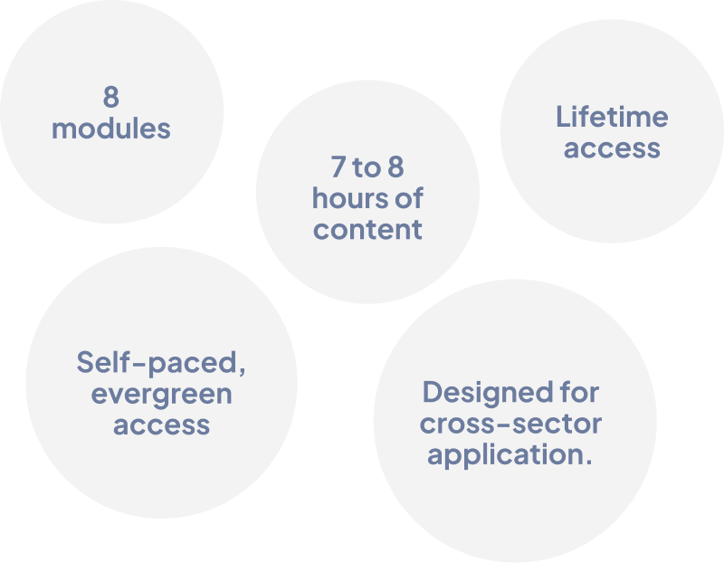 ✓ All 8 modules translated into your sector context
